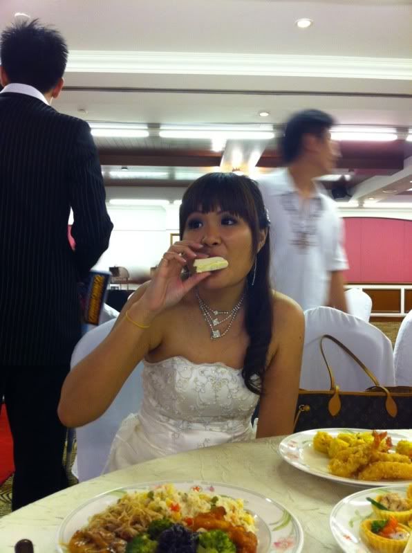 Ϯoday Ivy Lim become Mrs Tay! I'm really happy for her as she finally found her true love. Attended her ROM at Yishun OCC, seeing her wearing her wedding gown did make me have the urge to JIAN FEI instead of getting marry hahaha. =P Not saying Ivy is fat she definitely not just that I'm wondering if I am the one to wear a wedding gown of cos I do hope I look slim & pretty although they always say Bride are prettiest but personally I hope for myself to slim down!